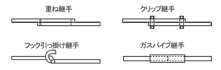 明治から大正期にかけて建設された初期の鉄筋コンクリート建築物では、鉄筋の端部同士を所定の長さに重ね合わせてコンクリートと一体化させる「重ね継手」が主に使用されていましたが、この時代に建設された建物の解体調査によると、さまざまな継手が使用されていたことが報告されています。例えば、大正時代では、名古屋の愛国生命ビルにおいてY字型鉄筋を重ねクリップで締めて継ぐ「クリップ継手」が施されていたという記述注1)もあります。